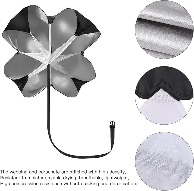 • GREAT HELPING FOR RUNNER -Provides excellent resistance training for improved speed, stamina, strength, and acceleration Chute releases while running for overspeed training.