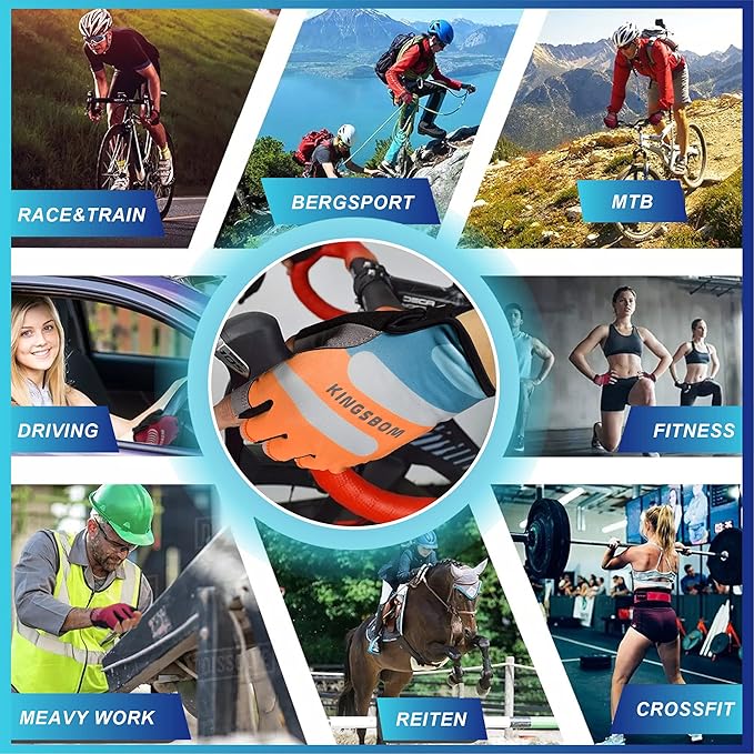 KINGSBOM Breathable Cycling Gloves, Shock-Absorbing Bike Gloves with Light Silicone Gel Pad, Anti-Slip Bicycle Gloves for Men and Women