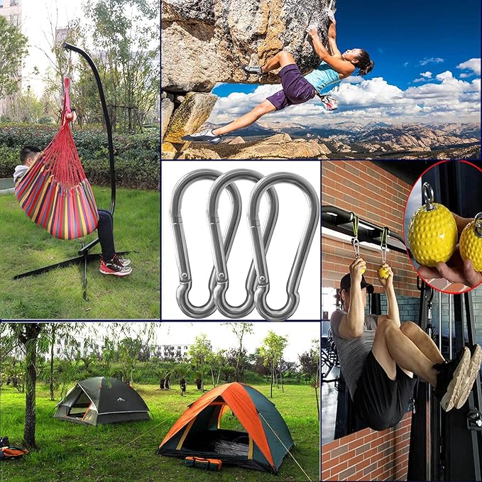 - WIDE USED IN HOME DIY PROJECT OR OUTDOOR: Steel snap hooks perfect for swing set, gym, hiking, camping, indoor outdoor equipment gear; Also connecting items to a belt and any outdoor use versatile binding, rigging and anchoring hardware