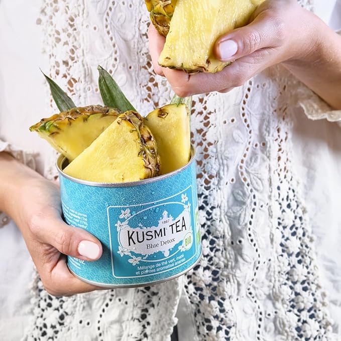 - ✅GREEN TEA BLEND - Kusmi Tea Blue Detox is a fruit-forward blend that combines green tea, mate, and rooibos with notes of pineapple. Take a moment and treat yourself to a sweet escape with a steaming cup. It’s also delicious iced!