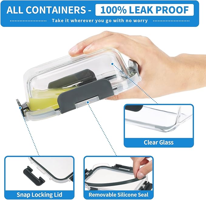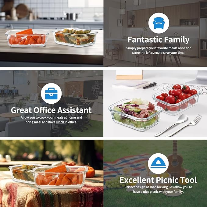 - [Oven, Microwave, Freezer Safe] Durable borosilicate glass containers designed to go from freezer to oven, containers are great for meal prep, leftovers, cabinet storage, and more, make meal prep simple and easy.