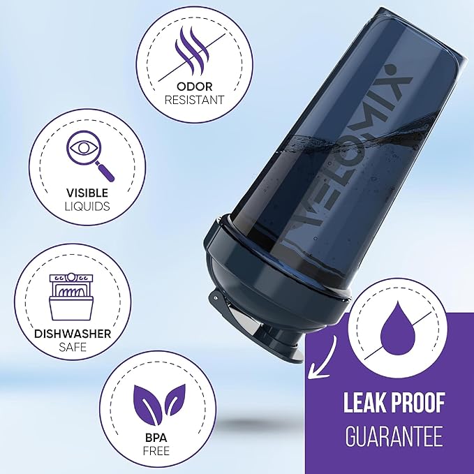• CLEAN IN A JIFFY - Velomix bottle shaker protein design is for the on-the-move individual. A swift rinse and you're set for another round! More time savoring, less time scrubbing.