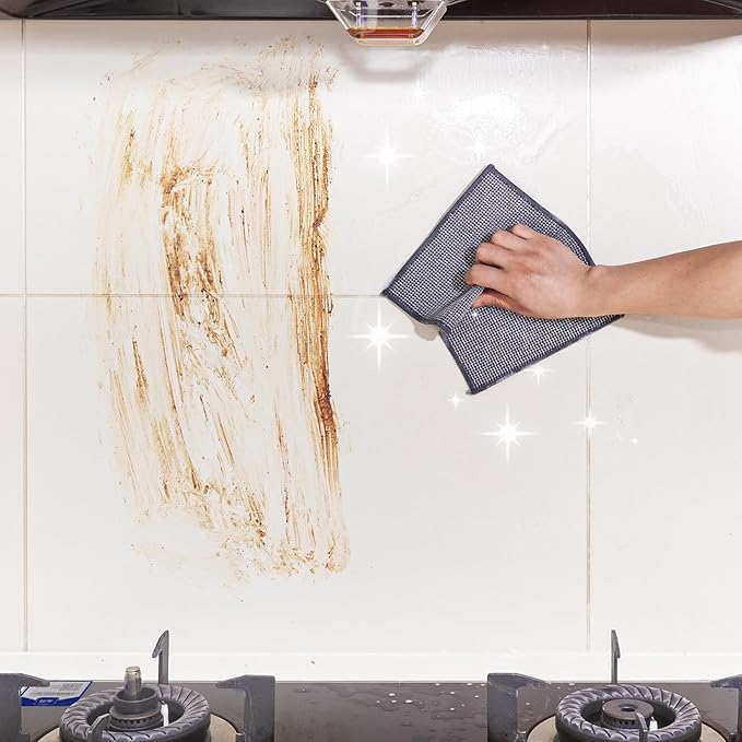 - Multiple Uses: The fine hole design of our dishcloth dishcloths makes them very useful. You can wet them, remove dirt on the silver side, and then remove the dirt while the rag surface absorbs moisture and cleans better, and effectively cleans the meal can be used to clean the dirt from dishes, sinks, counters, stoves, barbecue grills, and can also be used to clean curtains, vents, handrails, headboards, window grooves, faucets and footboards, etc.