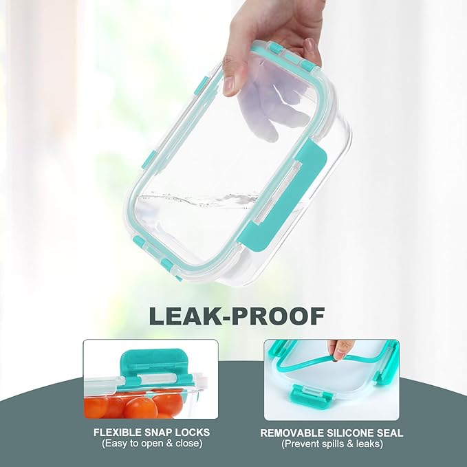 10 Pack Glass Food Storage Containers, Meal Prep Containers with Lids, Airtight Glass Lunch Boxes, Freezer, Oven, and Microwave Safe, Green